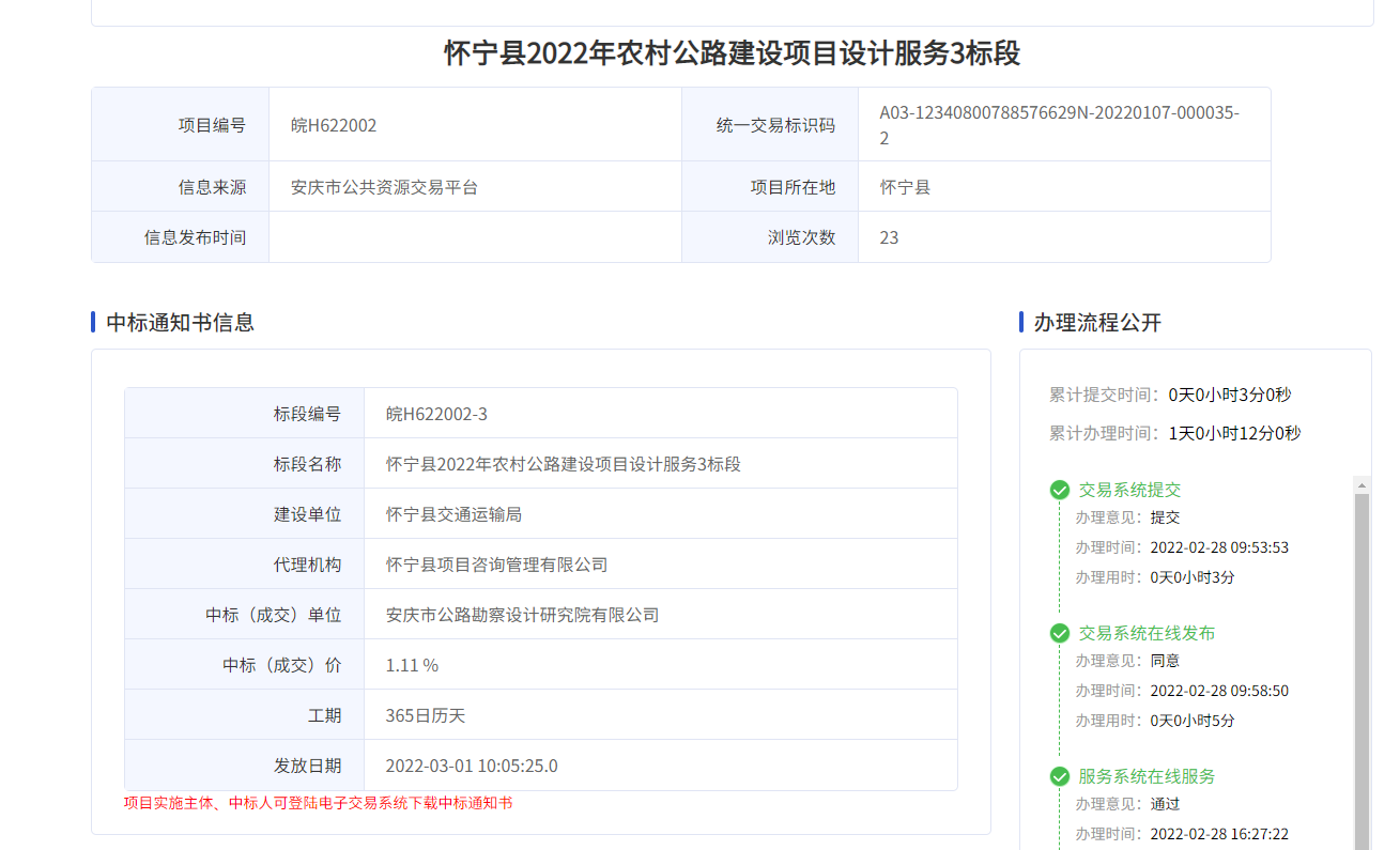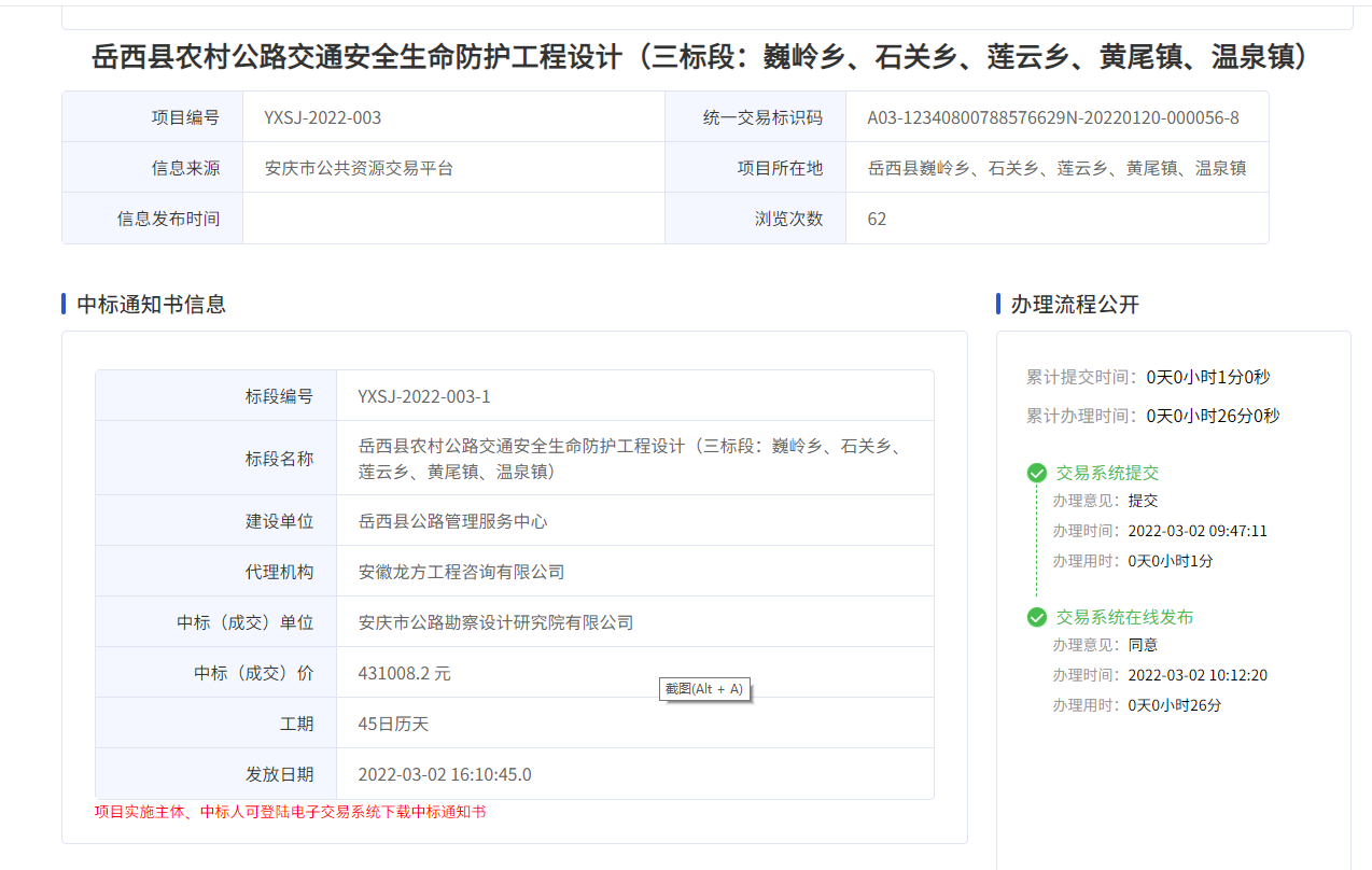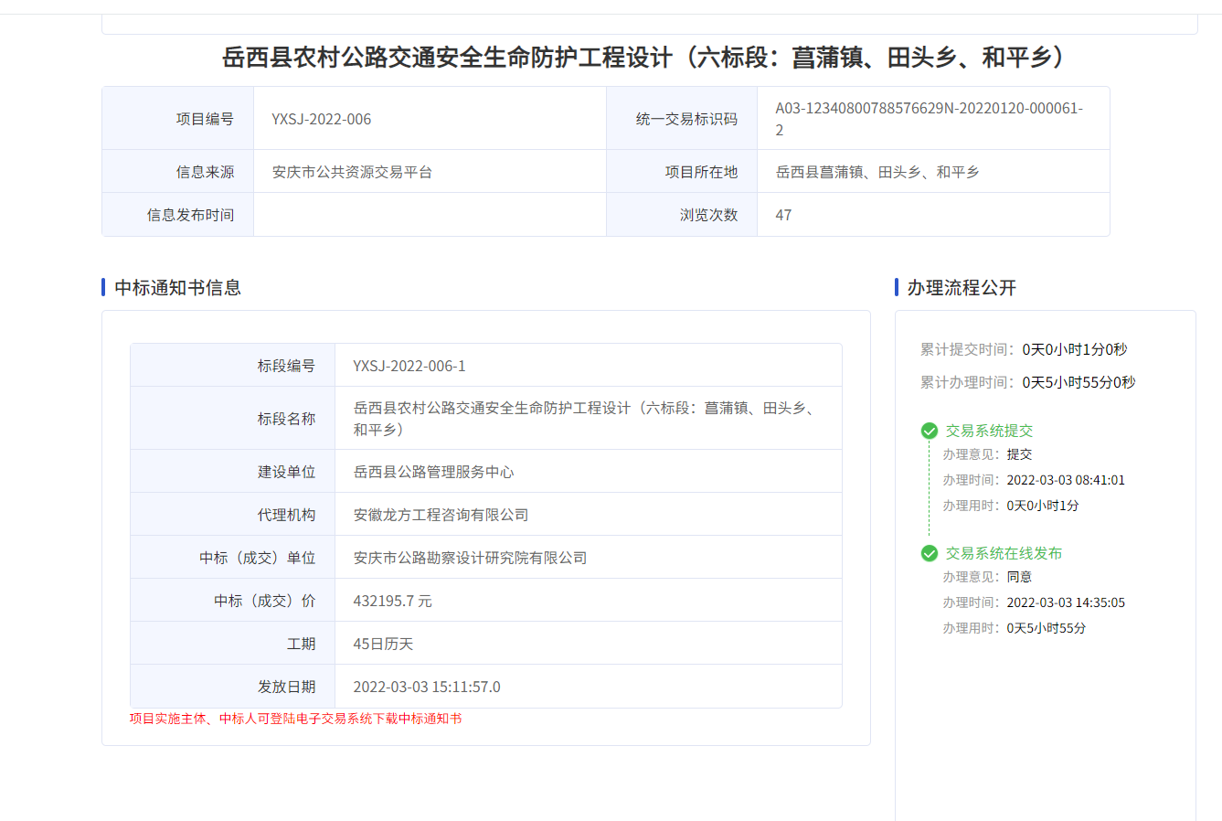 設(shè)計院喜中懷寧縣和岳西縣農(nóng)村公路